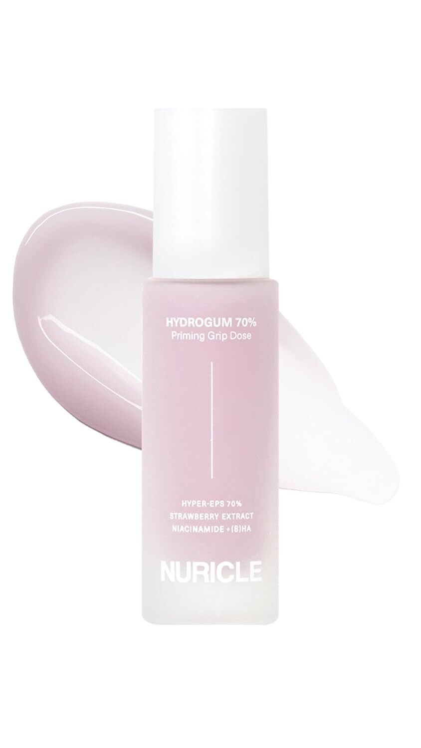 NURICLE Hydrogum 70% Priming Grip Dose 30ml is a dual-action primer and essence featuring 70% natural polysaccharide Hyper-EPS to deliver adhesion, moisture retention, and a smooth, luminous canvas for makeup—or for bare skin days. Designed to minimize irritation and prevent pore clogging caused by external factors, this naturally pink serum deeply hydrates and enhances the skin’s surface for a flawless finish.
