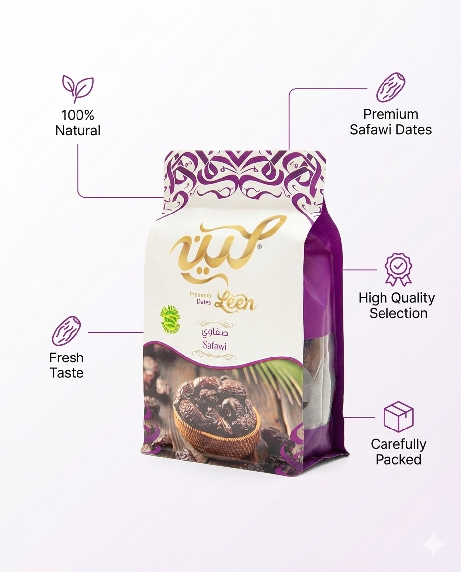 Leen Premium Safawi Dates – Resealable Zipper Pouch | Soft, Naturally Sweet & Melt-in-Mouth | Authentic Dates from Al-Madinah Al-Munawarah | 100% Natural