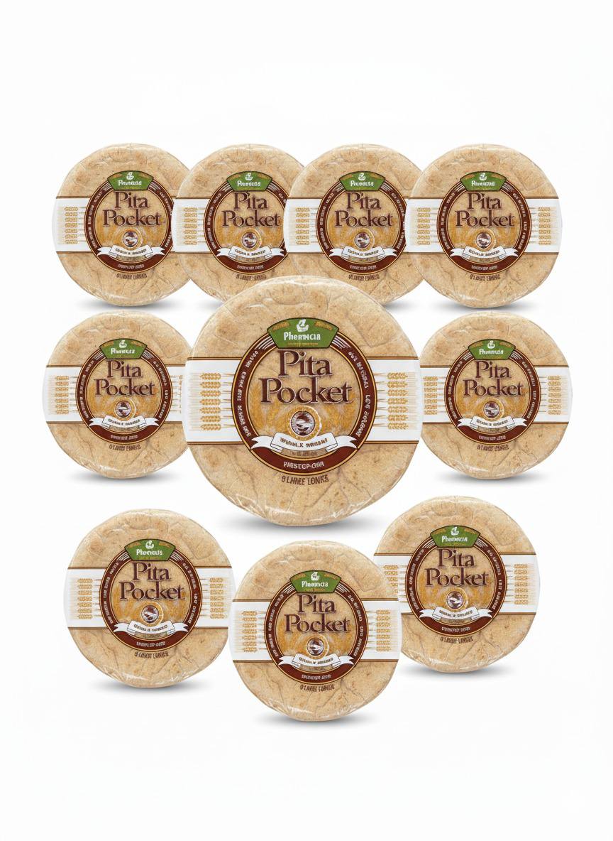 Phoenicia Pita Pocket Fresh Whole Wheat Bread, Large 8pcs, 23oz, (653g)
